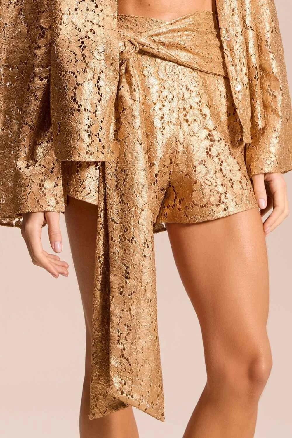 O Shorts Tinan curto, em modelagem fluida, representa a harmonia das formas. O tom dourado revela o espírito do verão, símbolo da elegância natural da MOS Beachwear.