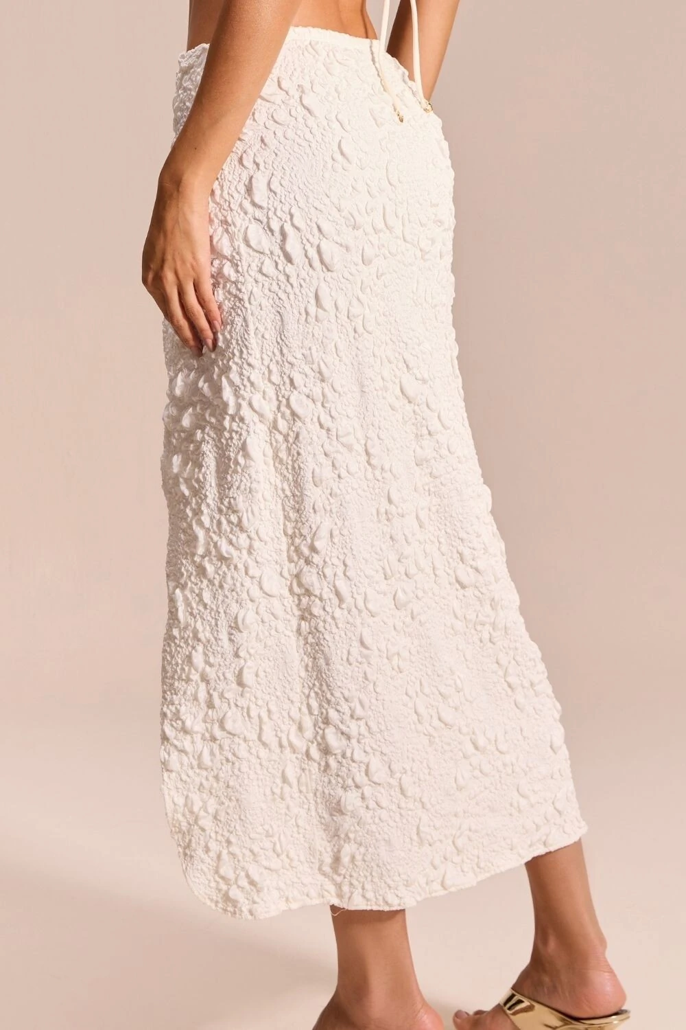 A Saia Vathy midi, com movimento sutil, evoca a leveza. O off white evoca o universo solar da MOS Beachwear, ideal para o clima tropical. Composição: 97% Poliamida - 3% Elastano