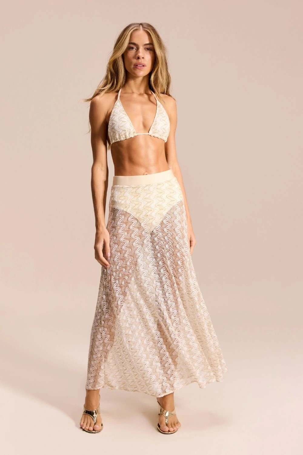 A Saia Vis midi, em trama sutil, expressa versatilidade. O off dourado evoca o espírito do verão, ideal para o clima tropical. Composição: 96% Poliamida - 4% Poliester