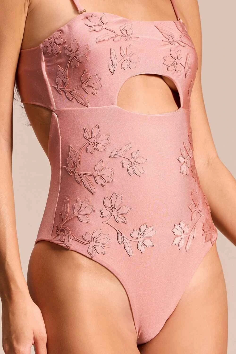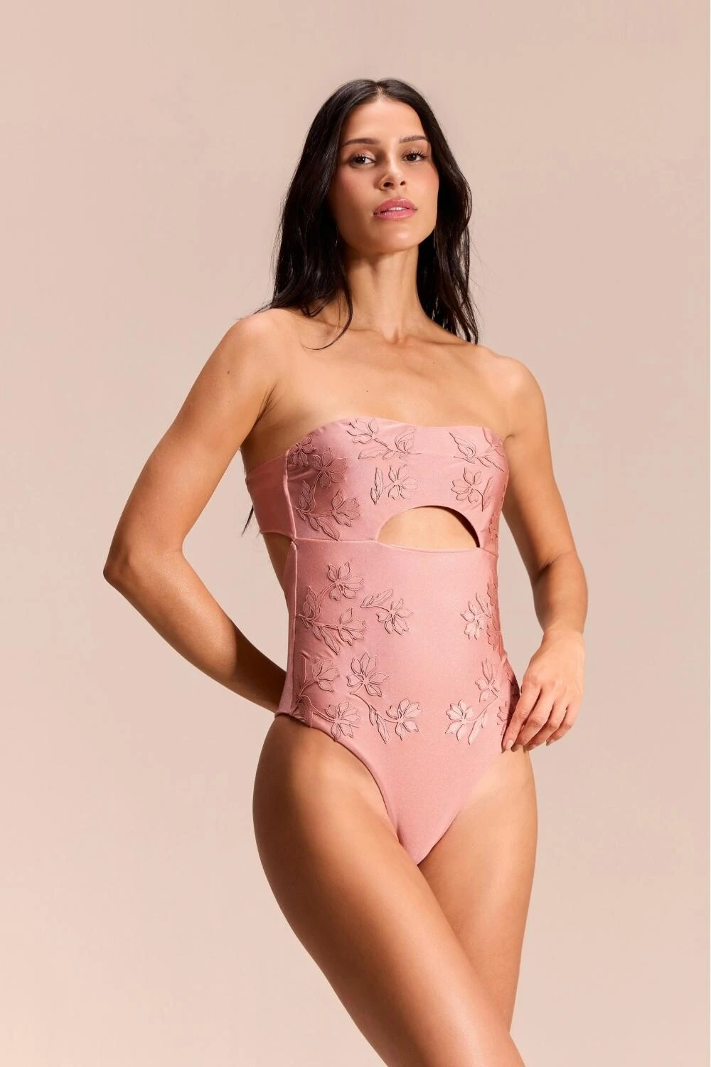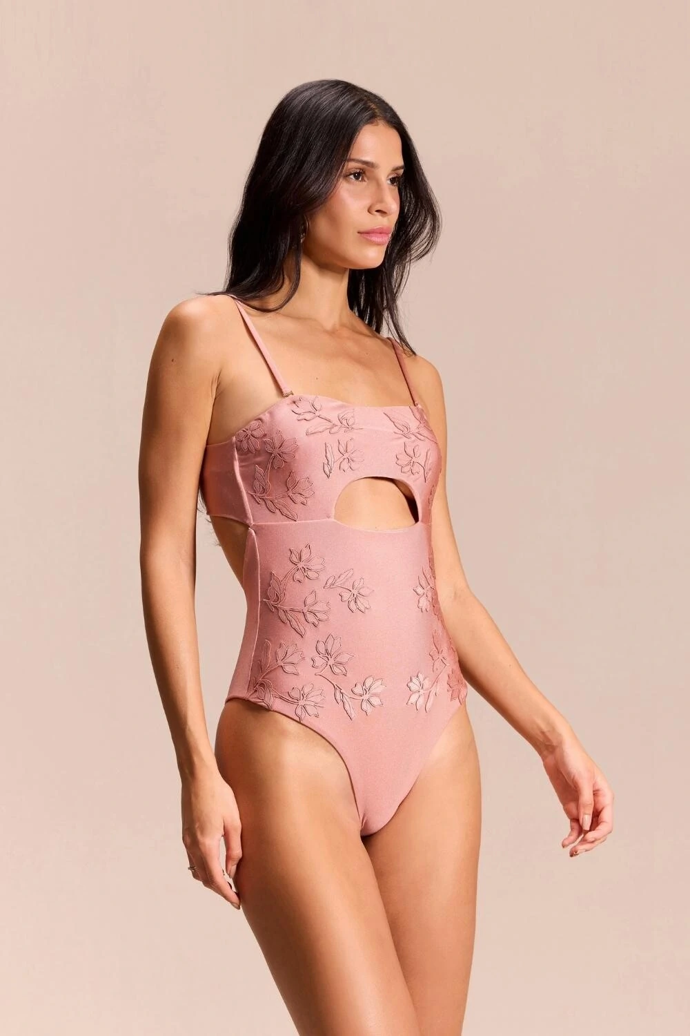 O Maiô Bohol revela o equilíbrio perfeito entre sensualidade e elegância artesanal - essência da MOS Beachwear. Em tom rosa Callas, o modelo apresenta textura floral em relevo e um recorte frontal delicado, que valoriza a silhueta com sofisticação.