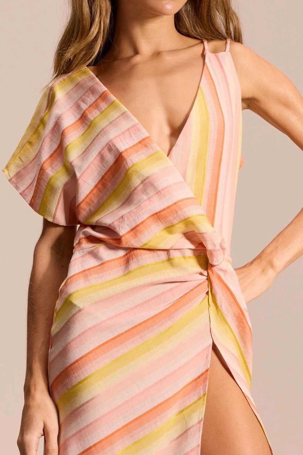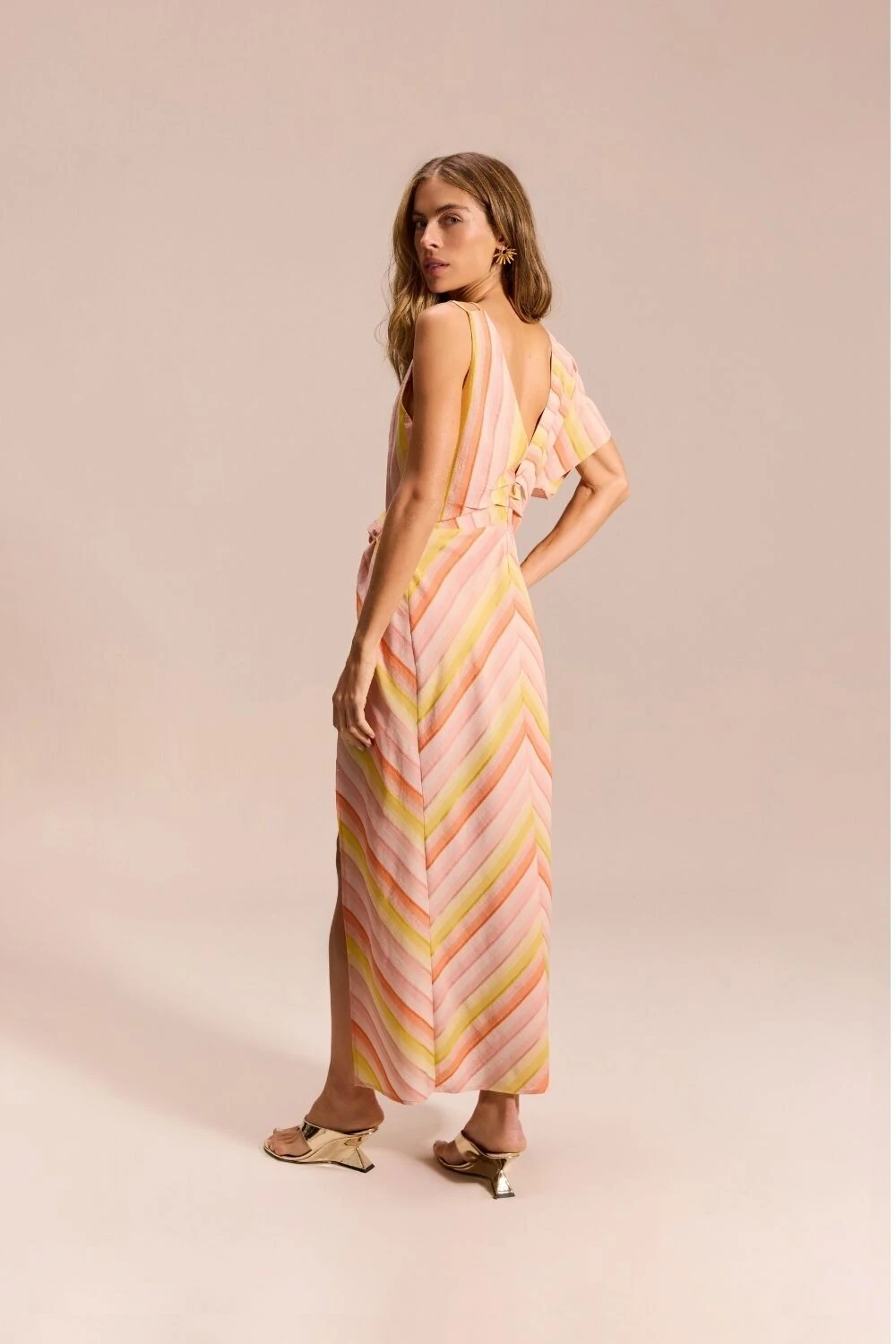 A Saída Leros é a expressão perfeita do verão sofisticado da MOS. Com caimento fluido e linhas diagonais que alongam a silhueta, o modelo combina delicadeza, movimento e personalidade em uma peça única — ideal para transitar da praia ao resort com naturalidade. O design assimétrico traz um charme especial, sendo um ombro de alças finas e o outro ombro com manga ampla que termina em torção na cintura, criando um visual moderno e feminino. A fenda lateral adiciona sensualidade na medida certa. O tecido, leve e respirável, mistura 64% algodão e 34% poliéster, garantindo conforto térmico, toque macio e excelente durabilidade.