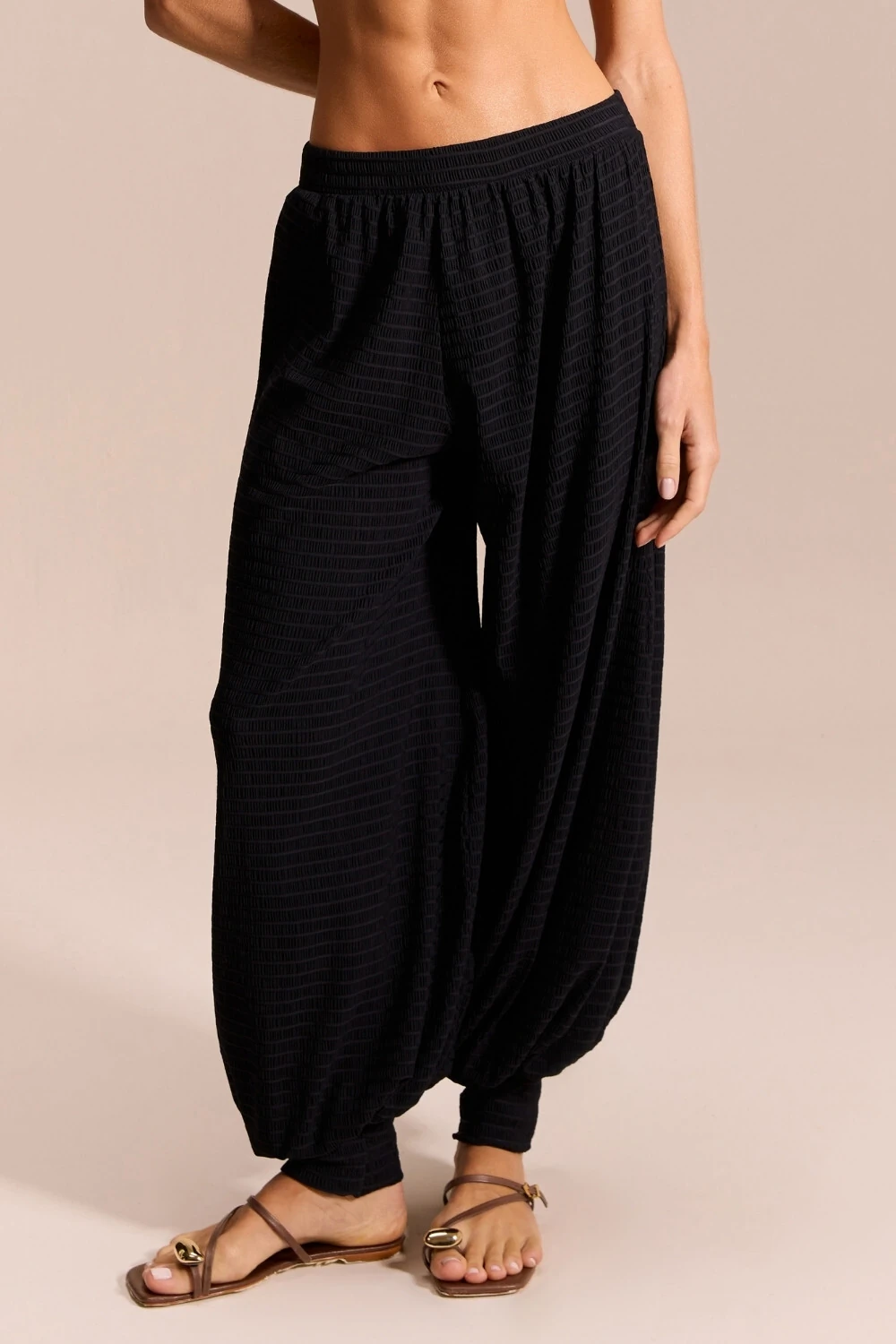Características: Calça com fit alladim, modelagem ampla e levemente ajustada nos tornozelos, criando um efeito fluido e sofisticado. O cós em lastex proporciona ajuste confortável ao corpo, valorizando a silhueta sem marcar. Ideal como saída de praia elegante ou para compor produções casuais com tops estruturados, camisas leves ou biquínis statement. O preto atemporal reforça a proposta minimalista e facilita combinações em diferentes ocasiões.